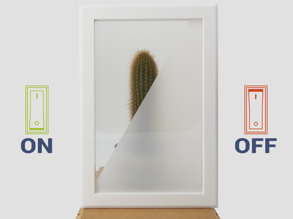 Sono pellicole adesive elettriche oscuranti innovative, in grado di essere accese e spente a comando attraverso un interruttore elettrico oppure con un telecomando IR. Sono indicate per vetrate divisorie di uffici o abitazioni, per vetrine di negozi. I cristalli liquidi all’interno della pellicola Switch LCD consentono in un solo millisecondo di garantire la privacy o la visibilità delle vetrate. In posizione “OFF” diventano un luminoso e nitido schermo HD per retroproiezioni con semplici ed economici videoproiettori.